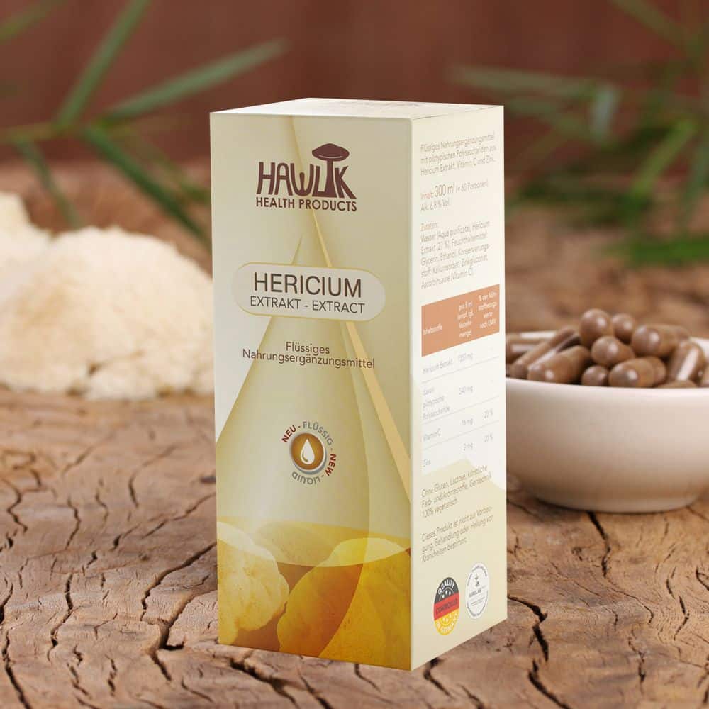 Mit Kalium, Zink und Vitamin C für ein normales Immunsystem und Schutz der Zellen vor oxidativem Stress. Hochkonzentriert und leicht zu schlucken. Flüssiges Nahrungsergänzungsmittel mit Hericium Extrakt Für unsere Hericium Produkte, wird der Pilz gezüchtet, schonend getrocknet und nur der Fruchtkörper superfein vermahlen (Shellbrokenverfahren*). Anschließend werden mittels eines traditionellen asiatischen Extraktions-Verfahrens die Polysaccharide aus dem Chitinpanzer des Pilzes gelöst und somit für den Körper besser verfügbar gemacht. Die Basis für die Flüssigextrakte ist ein sehr hochwertiger Rohstoff mit 40% Polysacchariden. Für unseren Flüssigextrakt haben wir eine spezielle Filtermethode entwickelt, die die Weiterverarbeitung des Trockenextraktes zu einem flüssigen Nahrungsergänzungsmittel erst möglich macht.*Shellbroken ist ein spezielles, superfeines Mahlverfahren. Vermahlen werden nur die ganzen Fruchtkörper des Pilzes.