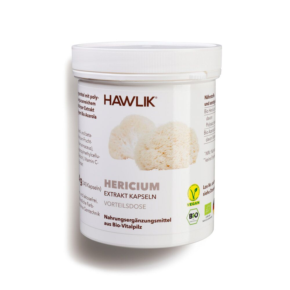 Standardisierte Dosierung. Mit Acerola. Konzentriert durch Extraktion auf 30% Polysaccharide. Jede pflanzliche Kapsel enthält 300 mg Vitalpilz Extrakt und 40 mg Acerola Extrakt (7 mg Vitamin C). Für unsere Hericium Produkte, werden die Pilze gezüchtet, schonend getrocknet und anschließend der gesamte Pilzfruchtkörper superfein vermahlen (Shellbrokenverfahren*). *Shellbroken ist ein spezielles, superfeines Mahlverfahren, das die Bioverfügbarkeit erhöht. Vermahlen werden stets die ganzen Fruchtkörper des Pilzes. Für den Extrakt werden mittels eines, aus der traditionellen chinesischen Medizin bekannten und patentierten, Extraktions-Verfahrens die Polysaccharide aus dem Chitinpanzer des ganzen Pilzes gelöst und somit für den Körper besser verfügbar gemacht.