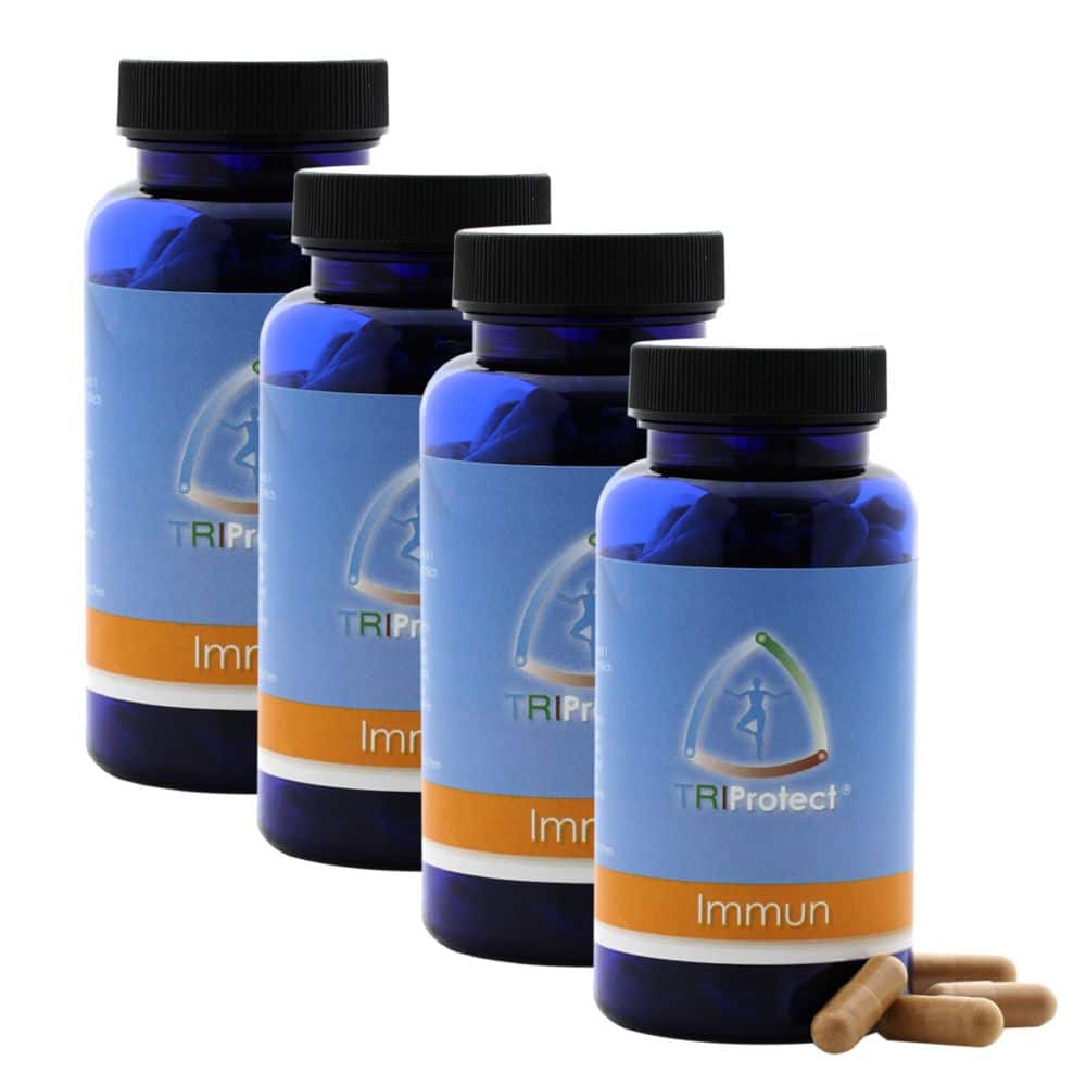 Mit Extrakten aus Shiitake, Agaricus, Maitake, Thymian und Süßholzwurzel Zink, Folsäure, Vitamin C und B6 für die normale Funktion des Immunsystems Nur zwei Kapseln täglich Eine abwechslungsreiche Ernährung, ein gesundes Bewegungsprogramm und (laut Deutscher Gesellschaft für Ernährung e. V.) fünf Portionen Obst und Gemüse pro Tag sind eine gute Basis für ein gesundes Immunsystem. Doch gibt es auch oft Gründe, warum diese Regel nicht eingehalten werden kann. Ob aus Mangel an Zeit oder aufgrund von vitamin- und mineralstoffarmem Gemüse (z. B. nicht-saisonale Ware). Deshalb kann eine gezielte Nahrungsergänzung sinnvoll sein. Immun TriProtect enthält hochwertige Extrakte aus Thymian und Süßholzwurzel, aus den Vitalpilzen Maitake, Shiitake und Agaricus blazei Murrill sowie eine abgestimmte Kombination von verschiedenen Vitaminen und Mineralstoffen. Achten Sie auf eine gesunde Lebensweise und tun Sie sich selbst etwas Gutes.